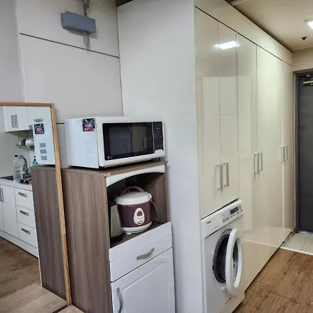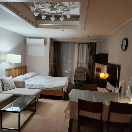 L'appartement se trouve à moins de 2 km de Complexe sportif de Séoul et à côté de l'aquarium du COEX. Le Parc d'attractions Lotte World se trouve à 10 minutes en voiture de la résidence.